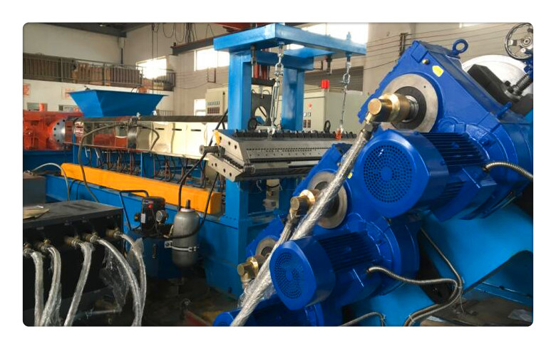 工程塑料造粒机,改性塑料造粒生产线(品牌)三、分散混合:分散混合是将组分的粒度尺寸减小,将固体块状或者聚集体破碎成微粒,或者是将彼此不相容的聚合物的相尺寸减小到所要求的范围。这 过程通常是依靠大啮合长度和中等导程的捏合盘来匀化。这个通常是靠窄片小角度捏合盘来实现。极端的情况先会采 特殊的分配 件来实现。不同的材料对螺杆的混合能力提出了不同的要求,增强型和填充型的要求就完全不同。即使是相同类型的加工类型,例如:工程塑料合金:,HIPS/PPO合金的要求与PC/ABS的要求也不尽相同。