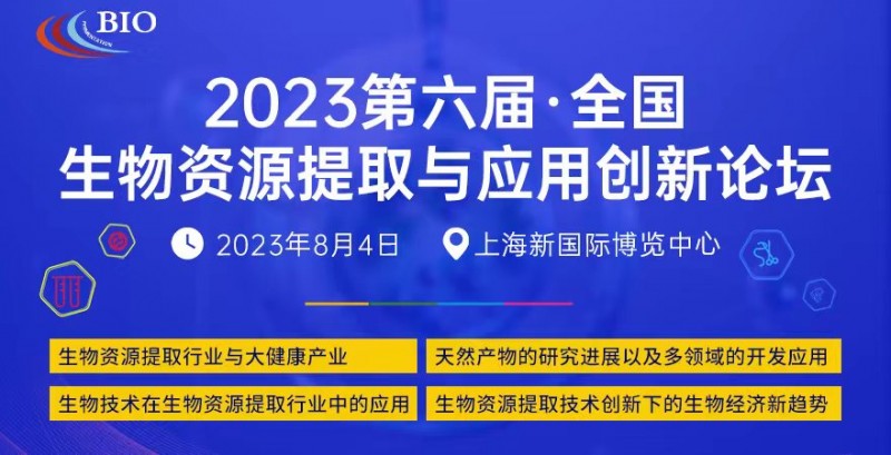 为进一步加强生物资源提取行业交流与合作,促进行业“产学研用”融合,提升行业科技创新水平,增强行业国际竞争力,中国生物发酵产业协会、浙江科技学院、浙江工业职业技术学院、浙江省农业生物资源生化制造协同创新中心(2011计划)将于2023年8月4日在上海新国际博览中心共同举办“2023第六届全国生物资源提取与应用创新论坛”。