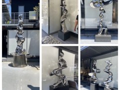 德清各类景观-抽象石不锈钢镜面雕塑 奇特造型石定制