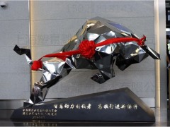 泰州定制不锈钢镜面牛雕塑 几何面拓荒牛雕塑摆件