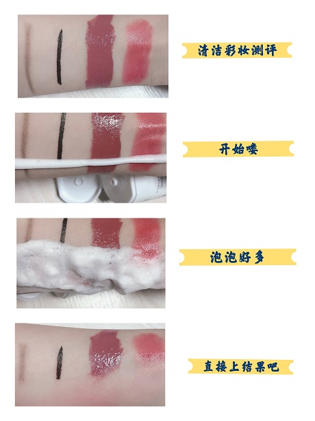 z重要的是,这款牛奶洗面奶加入了乳酸杆菌。乳酸杆菌代谢能够产生有机酸,可以很好的促进角质层的代谢,效果更温和,对于敏感肌的人来说非常的友好。而且相对于其他的泰国洗面奶来说,这款洗面奶清洁能力可是相当强的。经过测试,用眼线笔、唇釉等在手臂上涂画,再用这款泰国洗面奶轻轻揉搓后,用水冲净,会发现手臂非常的干净水润,清洁力度可谓是超出很多化妆人士的想象!