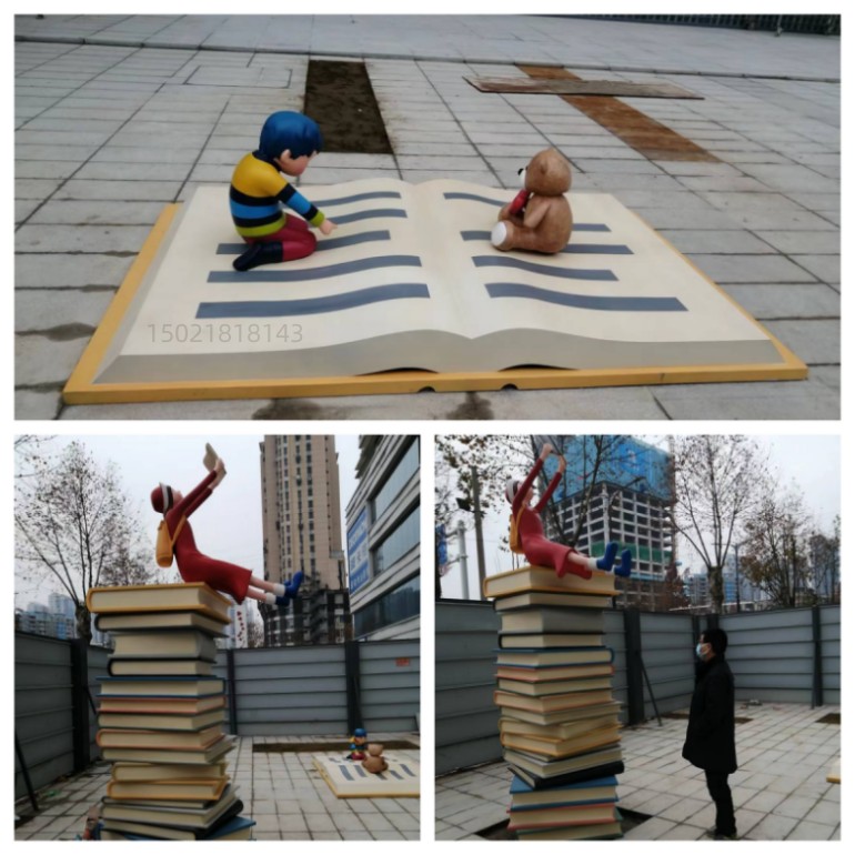 我们一起读书吧。书本雕塑是校园雕塑教育题材的优选,不锈钢材质、各类造型可长期室外摆放,用作学生勤奋之楷模。