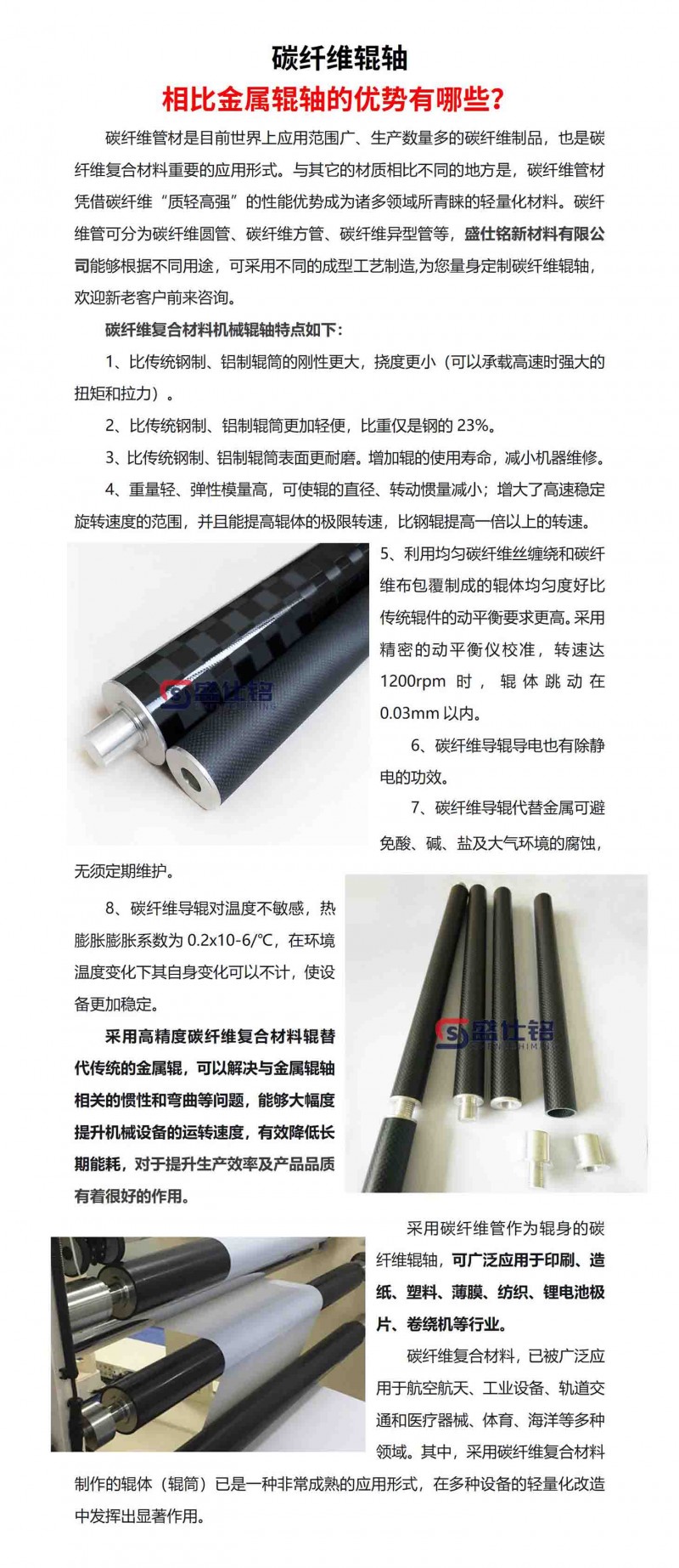 碳纤维复合材料,已被广泛应用于航空航天、工业设备、轨道交通和医疗器械、体育、海洋等多种领域。其中,采用碳纤维复合材料制作的辊体(辊筒)已是一种非常成熟的应用形式,在多种设备的轻量化改造中发挥出显著作用。