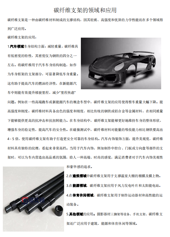 碳纤维支架是一种由碳纤维材料制成的支撑结构,因其轻质、高强度和优异的力学性能而在多个领域得到广泛应用。