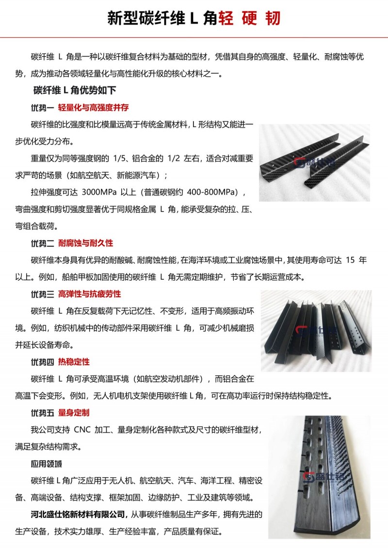L 角是一种以碳纤维复合材料为基础的型材,凭借其自身的高强度、轻量化、耐腐蚀等优势,成为推动各领域轻量化与高性能化升级的核心材料之一。