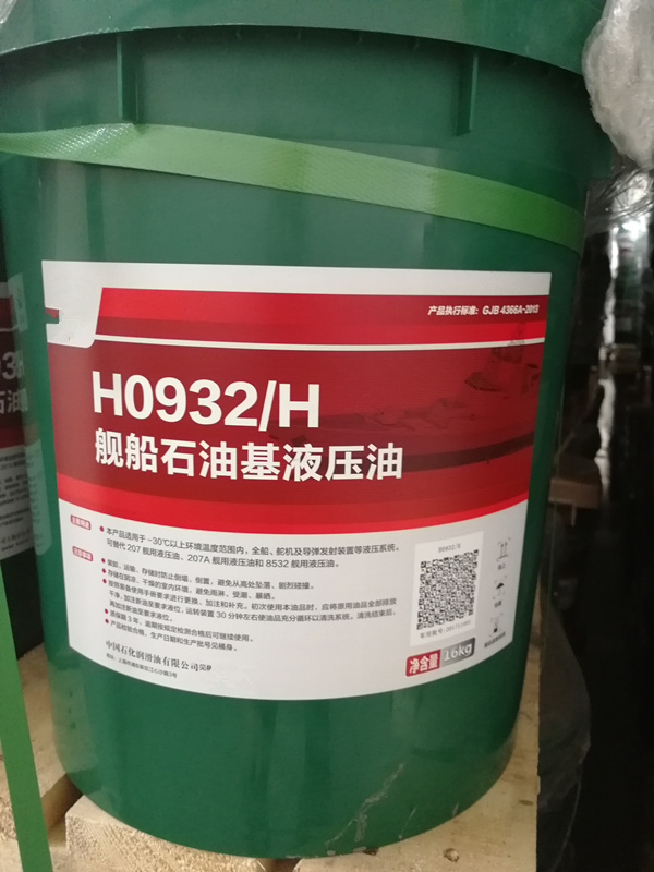 H0932/H舰船石油基液压油,以低凝油矿物油为基础油,并加有抗磨,抗氧,防锈等多种添加剂调合而成。