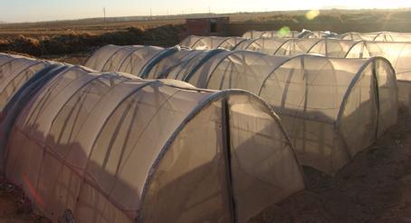 架。再按这个棚架的大小,用尼龙纱网(25目)做一个像蚊帐一样的棚罩,挂于棚架上,底边埋于地下,留下门口,门口上安上拉锁,这个装置就是为了