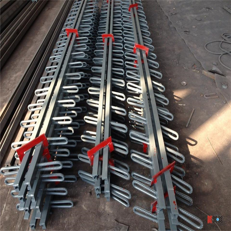 多组式伸缩缝由边梁、中梁、支承横梁、位移控制箱、承压支座、压紧支座、锚固构件和密封橡胶带组成,每组位移均为0-80mm,根据桥梁实际位移量要求确定组数,目前z大位移量可达1200mm。主要形式有:XF型斜向支承式伸缩装置。SSFB型直向支承式伸缩装置。多组式伸缩缝采用异型钢材高度仅50MM,结构简单,安装方便,具有明显的安全性、舒适性和耐久性。适用于桥面铺装层厚高度等于或大于80mm的各种梁既方便旧桥伸缩装置更换,又可供新桥修建时选用。