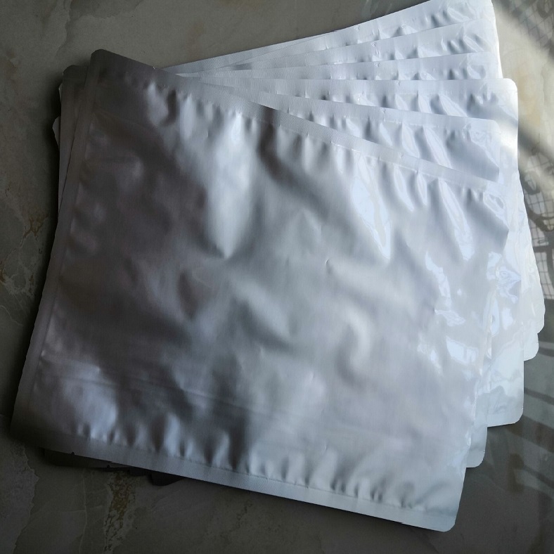 外观不透明,呈银白色,有光泽。材料结构一般为:PET/AL/NY/CPE。