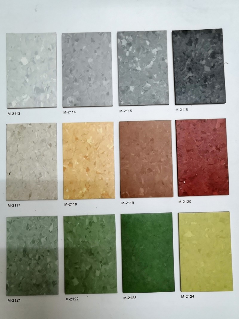 地材类型:同质透心塑胶地板 物理测试:合格 欧洲评级:34-43 总厚度:2.0mm 重量:2800g/㎡ 宽度:200cm 卷长:20m 防火等级:Bf1级 国家建材测试:有害物质含量合格 抗静电性:<2KV 抗电阻性:10^9-10 防干滑性:≥0.3 防湿滑性:R9 耐磨等级:T级 耐磨性:≤2.0mm³ 轮压测试:适合 颜色稳定性:≥6级 抗化学性:好 尺寸稳定性:≤0.40% 柔韧性:优异 洁净性能:良好 吸音性:约+4dB 残余凹陷度:约等于0.04 抗菌防霉处理:高效抗菌 特殊维护处理:PUR/PUACR强化处理(免打蜡、抗碘酒)