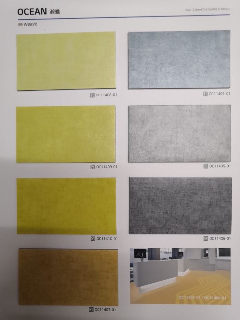 产品特点:1.全新的纹理设计:丰富多彩的样色搭配特有的抽象纹和编织纹设计,满足客户多样化需求;2.特殊的UV表面:运用UV表面处理技术,提供优质的抗菌性,耐磨性;3.使用寿命长:经济耐污、易清理、施工简单。