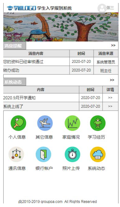 2.学生入学前,本系统完整收集到学生信息,学充人员对学生入学后,提前做出相应安排,并通过系统通知每个学生。以此方式,新生入校就能有序进行