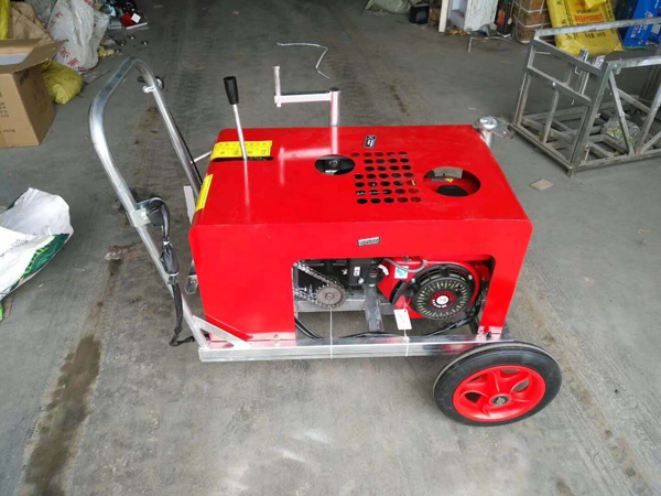 光缆牵引机机壳采用中国红在工地施工过程中比较显眼,跟能提醒工人安全施工,机身整体手推车设计符合人体力学,推拉移动起来很方便,后方大轮移动使得机器在复杂路况条件下也能推拉自如,确实方便不少,光缆牵引机机器设计分为三大块,第一外部机架,采用高强度合金制作解释耐用。第二部分动力,7.5马力发动机相当于5个人的拉力,很好的满足了在施中代替人力拉线的要求,第三部分链条传输设备,进口橡胶皮带上下双驱动压紧,不伤光缆是关键,高强度压力弹簧免调节使得进缆更方便!