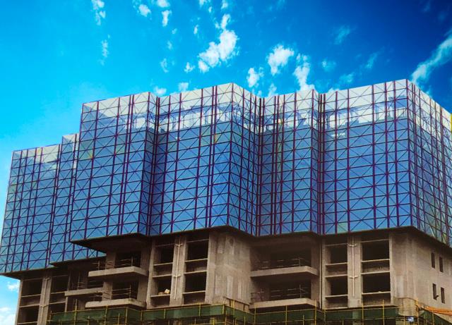 2、节省材料:仅搭设4-5倍楼层高度,大幅度减少脚手架的使用量;