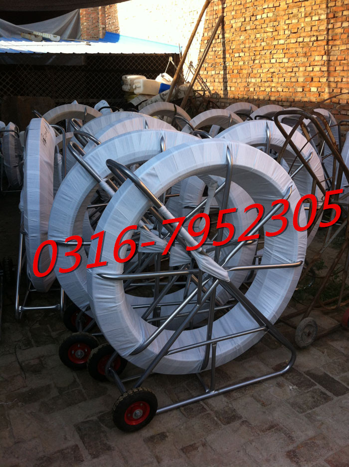 产品说明:玻璃钢穿孔器又名(玻璃钢穿线器、玻璃钢穿管器)对于在管道中牵引引导绳是优秀的辅助工具。光滑又富于弹性的表面可使穿孔器轻松地通过狭窄的通道。穿孔器由三部分构成:铜芯、玻璃纤维加强层、高压低密度聚乙烯防护层(平滑、坚固,可抵抗恶劣环境)。铜芯导体使捅条可以用不同方式轻易安放。璃钢穿孔器具有省时,省力,提高工效等优点,可用于电信管道清洗及光缆,电缆和塑料子管的布放。使用时首先将玻璃钢覆杆由引轮引出,然后与相应的金属头联接,穿入管路内。用于清理时,引导头带动清理工具,可以清理管道;用于布放电缆时,可先将钢丝或铁线带入,尔后用钢丝或铁线牵引电缆入管。