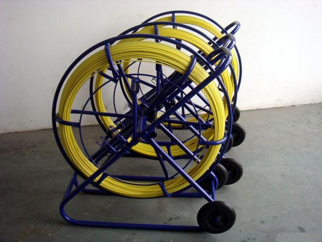 产品说明:玻璃钢穿孔器又名(玻璃钢穿线器、玻璃钢穿管器)对于在管道中牵引引导绳是优秀的辅助工具。光滑又富于弹性的表面可使穿孔器轻松地通过狭窄的通道。穿孔器由三部分构成:铜芯、玻璃纤维加强层、高压低密度聚乙烯防护层(平滑、坚固,可抵抗恶劣环境)。铜芯导体使捅条可以用不同方式轻易安放。璃钢穿孔器具有省时,省力,提高工效等优点,可用于电信管道清洗及光缆,电缆和塑料子管的布放。使用时首先将玻璃钢覆杆由引轮引出,然后与相应的金属头联接,穿入管路内。用于清理时,引导头带动清理工具,可以清理管道;用于布放电缆时,可先将钢丝或铁线带入,尔后用钢丝或铁线牵引电缆入管。