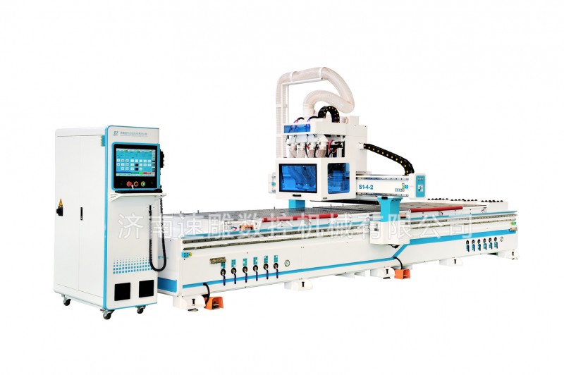 S1-4-2双工位开料机是具有两个工作台面的设备,前后两个工位交替工作,大约比单工位开料机提高30%的效率,机器生产效率高,节省时间,因此是很多中小型板式家具厂比较青睐的开料机设备。