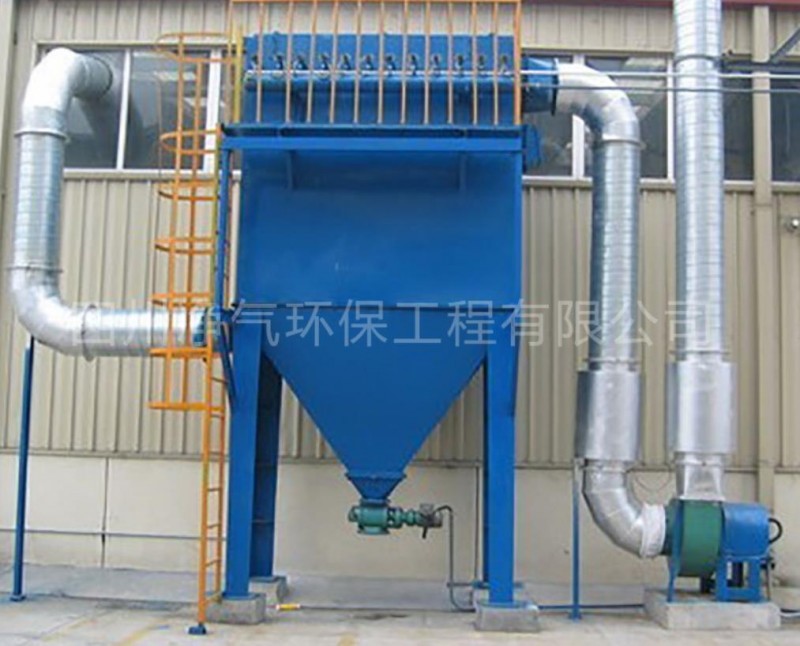 在我公司开发生产的废气处理设备中,单机袋式过滤器是消化吸收国外同类产品的优势。根据国内现有的除尘设备,研制了一种采用压缩空气喷射过滤袋的新型袋式除尘器。脉冲由控制系统完成,并通过喷管喷出。滤袋周围引入大量空气进入滤袋后,滤袋迅速膨胀,引起脉冲振动,滤袋外壁沉积的粉尘被冲击掉,进入集尘箱,通过传送带排出。