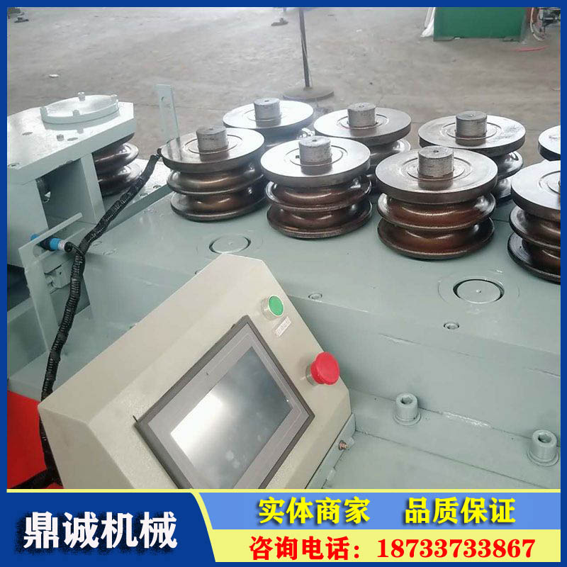 全自动大棚弯管机由九轮组成,配置伺服电机,PLC智能电脑数控系统,可储存记忆100条。单行程弯管可连续弯10个角度,计数准,速度快。设备可弯圆管、方管、椭圆管、双模骨架、几字钢、C型钢等钢管,模具材质45号钢。价格低廉,专为大棚钢管骨架弯曲设计,一次弯曲成型,只需一个人工。