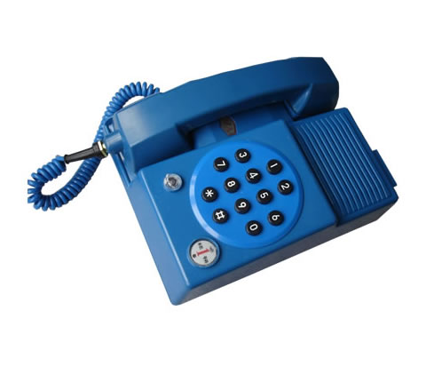 防爆电话机主要是供煤矿井下通信联络之用,它具有扩音呼叫,双方对讲等功能,并具有架设速度快,重量轻,体积小,通讯距离远和很强的防尘,防潮特点。可由二十部以下单机并在二芯电缆线上组成独立的通讯系统,不需要交换机。通话距离不小于12公里。不需拨号,直接用语音呼叫,机内设有专用电池为其供电,不需外接电源。