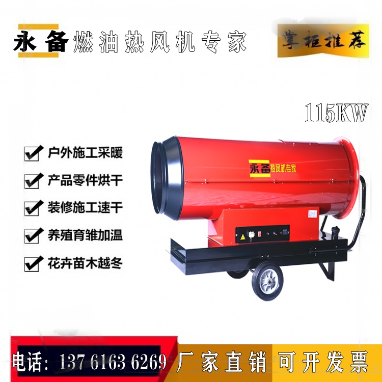 随着天气气温的转变,冬季应该都会用到取暖设备,要说哪种设备好,那就数永备燃油热风机了,在工厂车间、养殖车间、温室大棚等场所都可见到燃油热风机,用起来非常的方便。燃油热风机可以实现大范围的加热,整体送风非常均匀,不会受到任何因素的影响,即开即热。