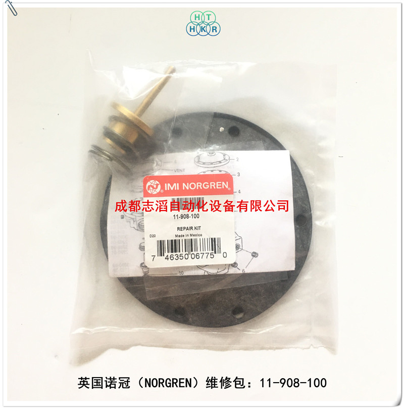 11-908-100英国诺冠(IMI NORGREN)先导压力减压阀11-808-980或11-808-960维修包技术参数说明:产地为墨西哥、生产周期为10-12周、包含橡胶垫、密封圈、弹簧、黄铜材料的阀芯、先导调压阀主体一般可以使用较长时间、正常情况下1年以后可以考虑更换阀的部分密封或者阀芯部件!