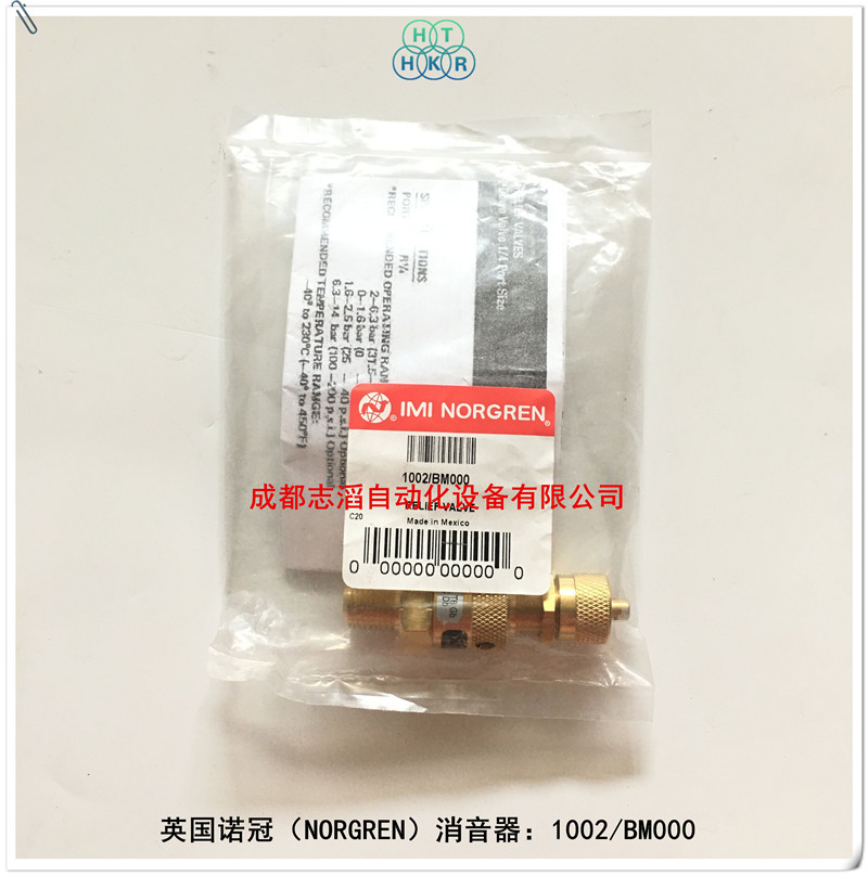 1002/BM000英国诺冠(IMI NORGREN)气动元件(气动器材)-缓冲阀技术参数简介:接口尺寸R1/4、阀主体材料为黄铜、工作压力范围为0.14-1.6bar、重量为0.11kg、产地为墨西哥!