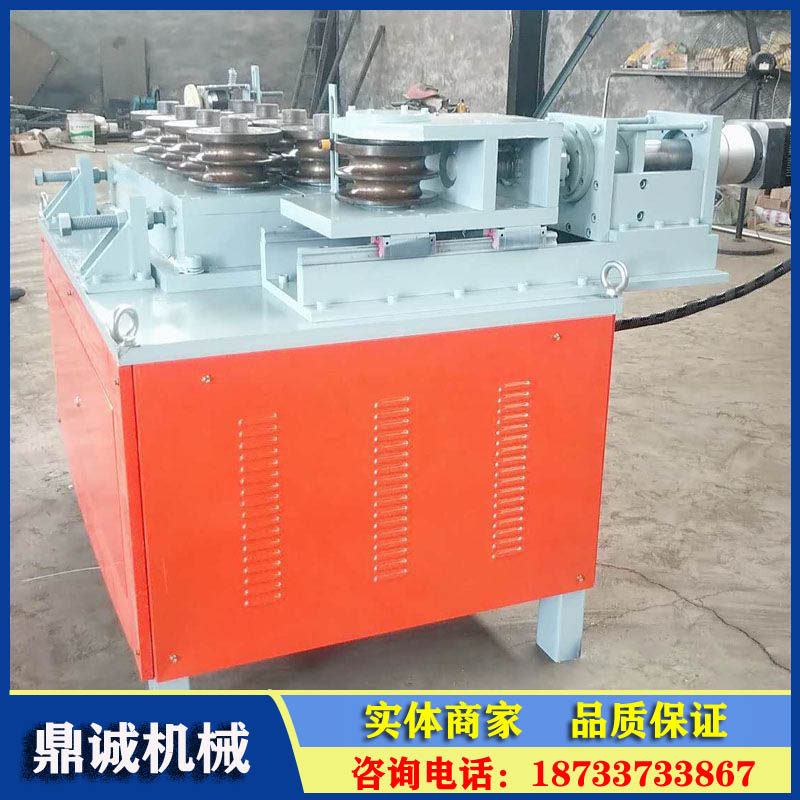 1:全自动大棚弯管机由九轮组成,配置伺服电机,PLC智能电脑数控系统,可储存记忆100组,显示操作系统为触摸式全中文菜单式,具有多种不同弯曲角的预制,中文字幕显示,可任意选择手动、半自动、全自动操作方式,紧停功能。控制系统、驱动系统、显示系统等均采用可靠性的进口件,精度高、效率高、适合于批量生产,具有国际与国内先进水平。单行程弯管可连续弯10个角度,精准度高,可弯圆管、方管、椭圆管、双模骨架、几字钢、C型钢等钢管等,模具材质45号钢和轴承钢两种,专为大棚钢管骨架弯曲设计,鼎诚机械全自动弯管机,设有弯制立体空间管件的全功能装置,输入程序整个弯管过程自动完成。整机具有操作方便、性能稳定、工作效率高、安全系数高等特点,是管件加工行业的理想设备。一次弯曲成型,只需一个人工。