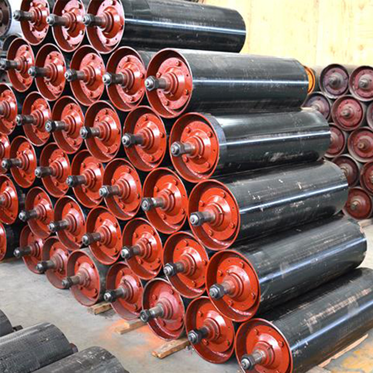 (2)导向滚筒用于改变输送带运行方向,用于180度改向时一般放在尾部或垂直拉紧装置处。90度改向放在垂直拉紧装置的上方,增面滚筒一般用于小于或等于45度的场合。