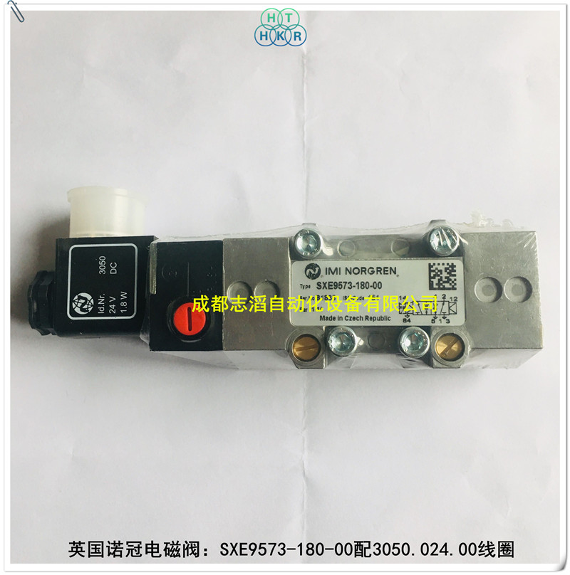SXE9573-180-00配3050.024.00线圈英国IMI NORGREN诺冠电磁阀简介:属于ISO#1阀、带流量按下锁定、电控气弹簧复位、流量为1230l/min、工作压力为1-10bar、阀体重量0.33kg、配普通线圈3050、线圈电压为24V电厂、阀芯为瑞士产金属阀芯!