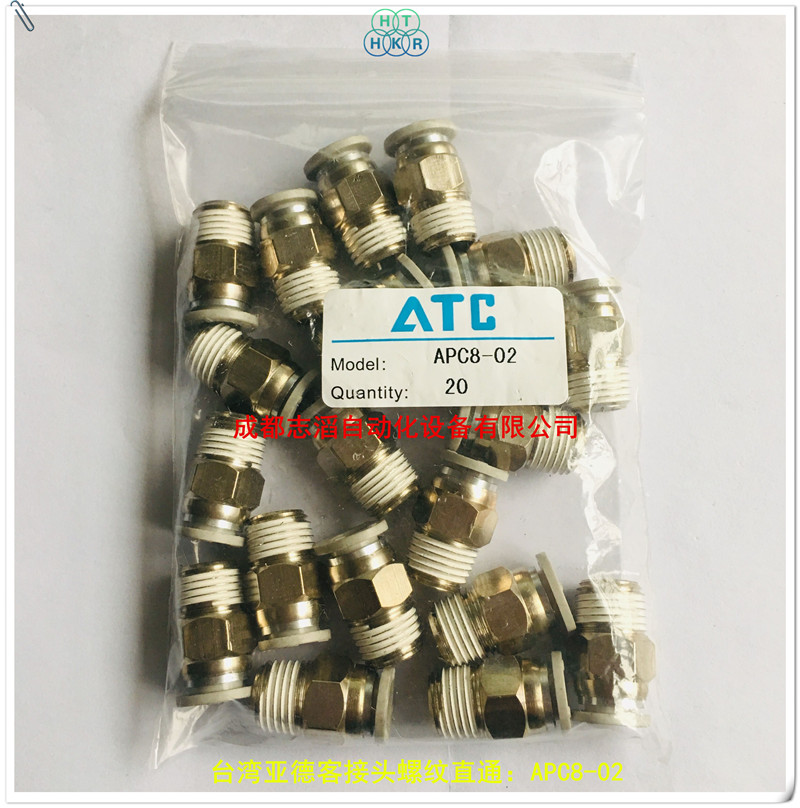 APC8-02现货台湾亚德客AIRTAC接头产品特点简介:外观小巧、节省安装空间、性价比高、螺纹部分涂有密封附件剂、M5公制螺纹附密封垫片、确保螺纹连接部分无泄漏、塑料接口部分颜色有灰色和黑色可选、方便与配管!