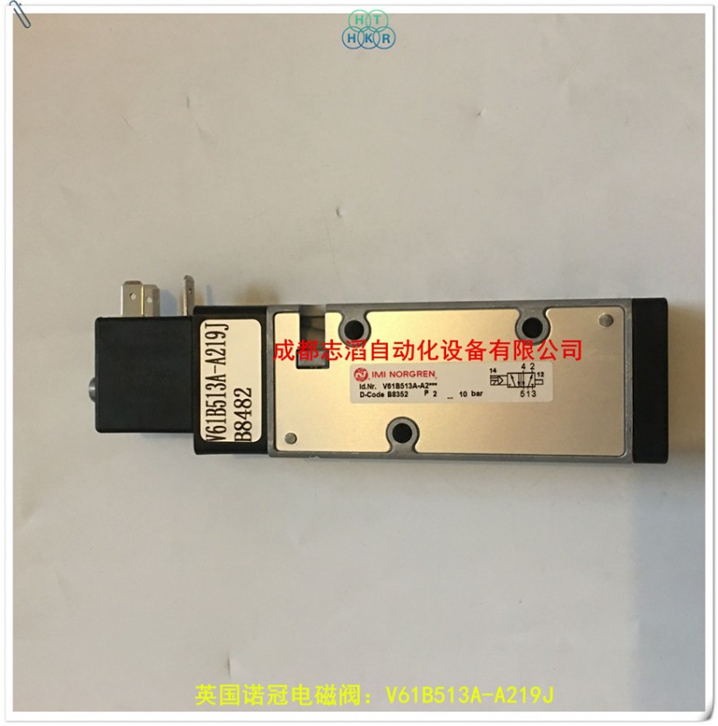 V61B513A-A219J英国诺冠IMI NORGREN电磁阀技术参数:接口尺寸G1/4、驱动方式为电控/气复位、先导供气为内先导、先导排气尾非集中、流量为1300l/min、工作压力范围为2-8bar、阀体中路为0.33kg、产地为捷克共和国、配诺冠普通线圈220V(型号为19J、工业线圈为22mm)!