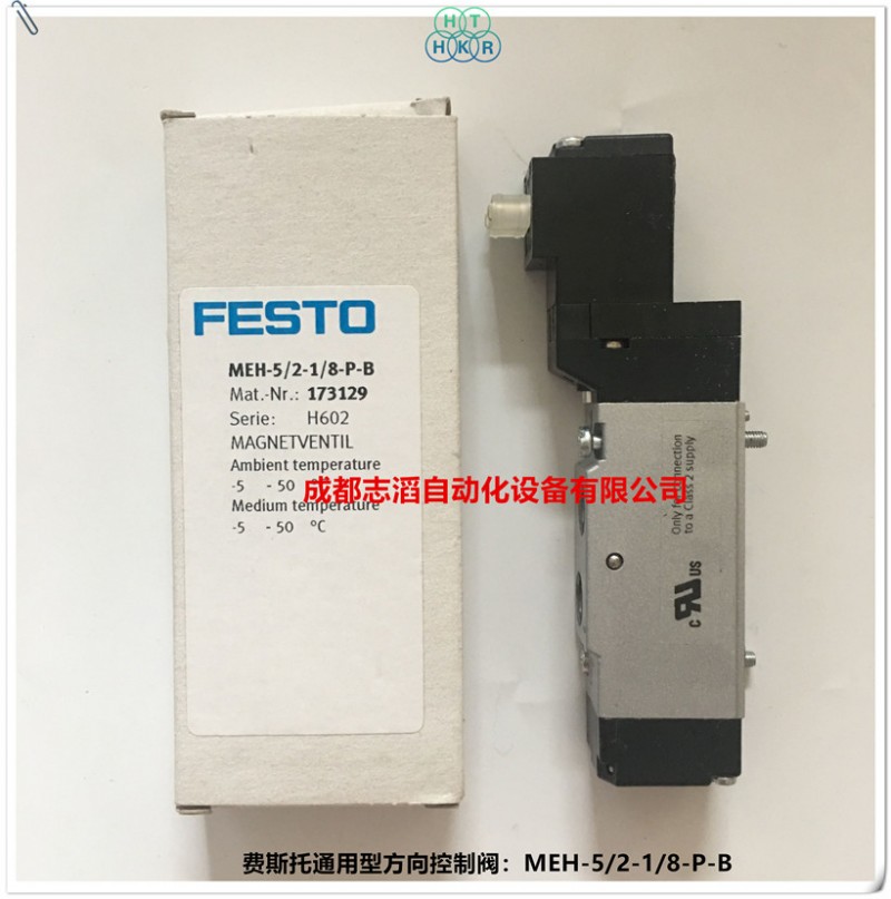 MEH-5/2-1/8-P-B德国费斯托Midi阀FESTO通用型方向控制阀173129技术参数:半管式阀、阀功能2位5通单电控、气动接口内螺纹G1/8、先导气源内部、复位方法弹簧机械、电接口带E型电磁线圈、工作电压24VDC!
