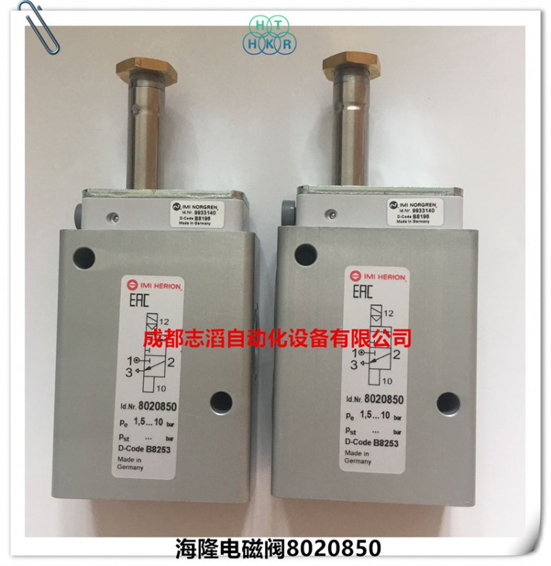 8020850.0000.000.00德国海隆(imi herion)电磁阀技术参数:接口尺寸G1/2、NC、流量3000l/min、工作压力1.5-10bar、响应时间25ms、阀体重量0.7kg、产地为德国!