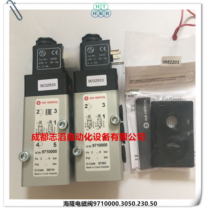 IMI HERION(海隆)97100系列先导式软密封滑阀现货型号:9710000.3050.230.50(技术参数接口尺寸1口为G1/4、3和5口为G1/8、2和4位为法兰、功能NC、驱动方式电控/弹簧、Kv值为0.75立方米/小时、阀体重量0.25kg)、配海隆普通线圈3050、电压为AC220V、产地为捷克共和国!
