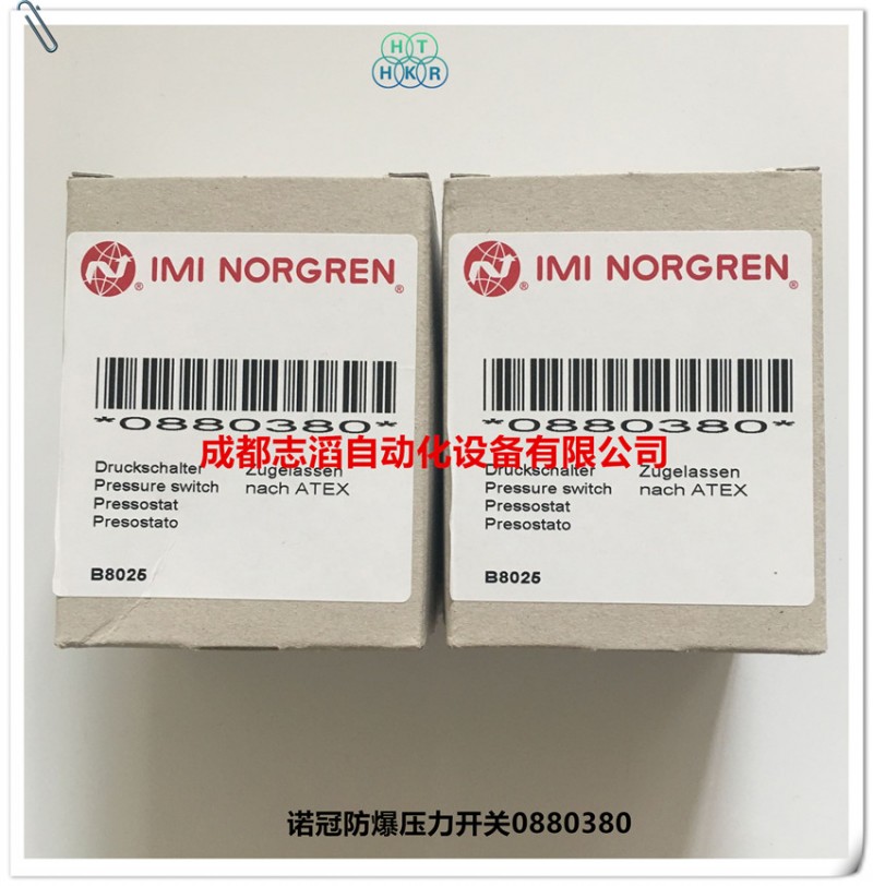 0880380英国诺冠(IMI NORGREN)防爆压力开关技术参数:工作压力范围0.5-8bar、切换压差0.25-0.65bar、z大承受压力80bar、切换时间100、压力开关材料铝、密封件FKM/MS、接口尺寸G1/4、重量0.2kg!