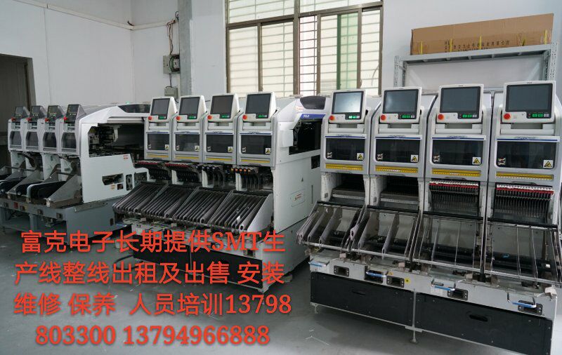 东莞市富克电子提供 FUJI YAMAHA PANASER JUKI 等品牌的贴片机租赁,租赁时间短,免抵押,包维修安装及操作培训。可根据客户要求配置周边设备,上下板机,印刷机,SPI 锡膏印刷机,高速贴片机,多功能贴片机,回流焊机,AOI等本公司为客户提供贴片片基的维护保养;我们团队是一批有着丰富维修保养经验的工程师团队,维修保养作业范围遍布全国各地,检测故障精准,维修速度快,可签定乃能度设备保养合同,不限次数上门维护,同时库存保养配件价格低型号齐全,*大限度的为客户降低维护保养支出,全年全天候保障客户的生产设备正常高效的生产,为客户的产品品质和交期提供坚实的保障。保养机型:FUJI NXT XPF XP142 XP143 XP242 CP6 CP642 CP643 cp7 cp8 QP3 ,PANSonIC 系列,YAMAHA系列,JUKI 系列等等