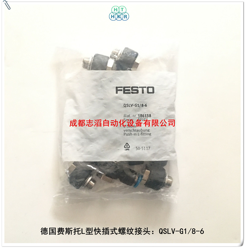 QSLV-G1/8-6德国费斯托(FESTO)L型快插式螺纹接头技术参数:订货号186138、标准系列(诸多派生型,在标准应用中选择范围广泛,具有很大灵活性,PBT和镀镍黄铜)、产地为印度!