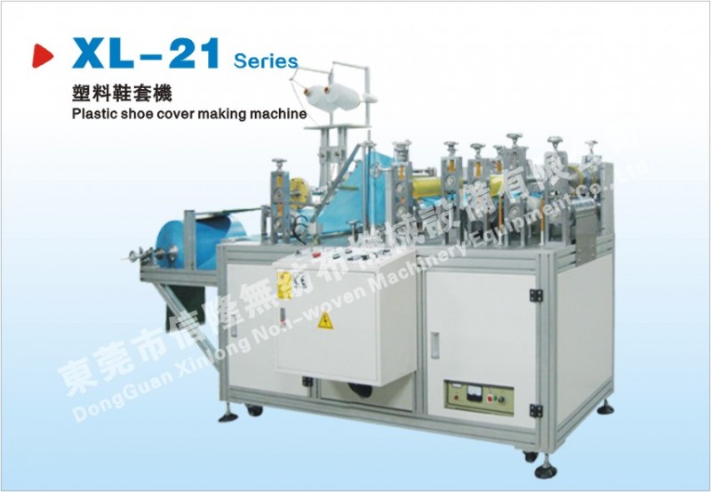 塑料鞋套机XL-21是生产塑料鞋套机器,从原料入到成品的完成均为一条线中度过左作业,省时,省工