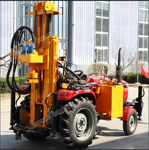 本产品是将拖拉机同气动钻机相结合,形成钻机 拖拉机一体的打井设备,利于行走和空压机的结合。使施工更加方便、李效