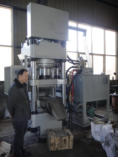 郑州市鑫源液压机械有限公司生产的小功率,大压力液压牛羊舔盐砖压块机,为四柱式液压机,压力大,jingque度高。
