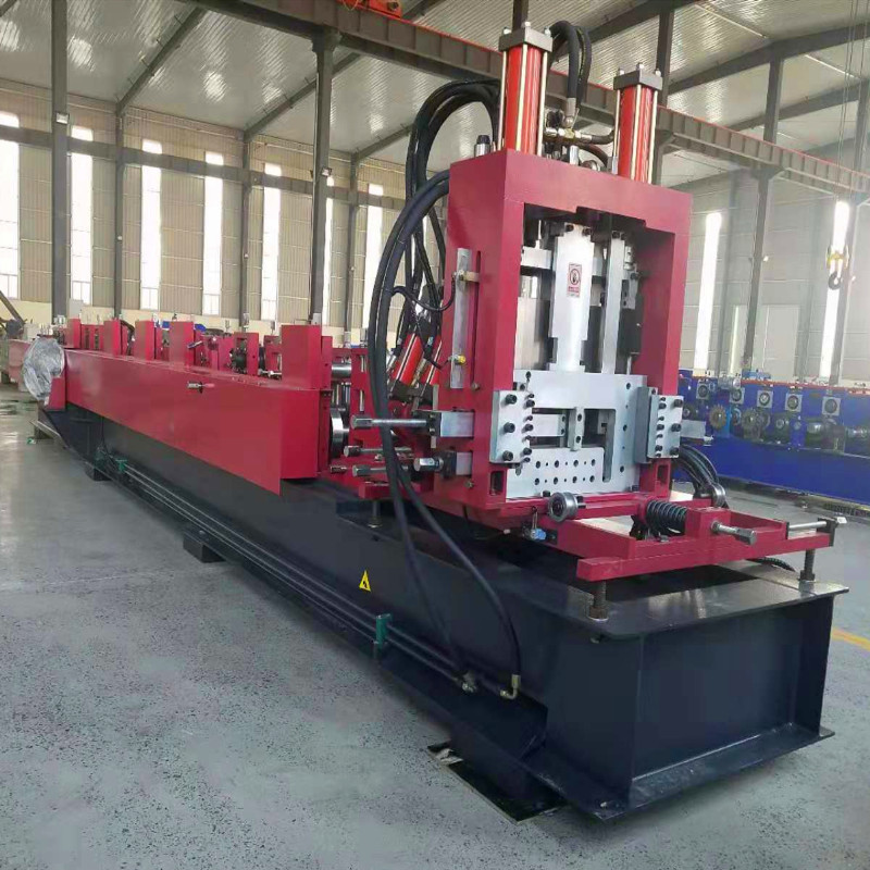自动CZ型钢无极设备是一套可生产多种规格CZ型檩条成品的单卷成型机组。自动CZ型钢设备主要由被动装料架、整平装置、前剪切装置、成型主机、自动冲孔装置、无极成型后剪切装置、液压站、计算机控制系统等。