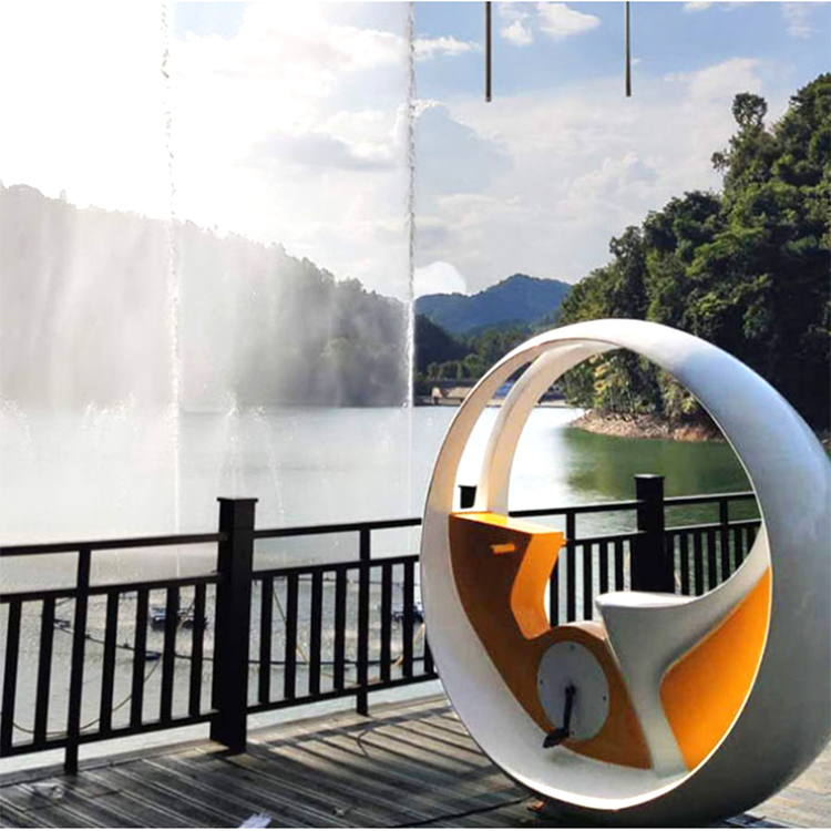 通过自行车喷泉水景装置可实现大小不一、高度不一的喷泉效果,喷雾效果,水幕效果等,配以动感灯光,整个场景非常漂亮。它的外观造型给人们的设计感很好,让人们眼前一亮,尤其是当人们坐在上面用力蹬的时候,会看到喷泉水柱的出现,您越是用力蹬喷泉水柱喷的越高,真是好看。