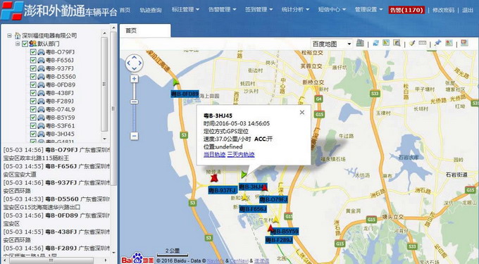 实时位置:澎和外勤通车辆服务是利用GPS位置技术对终端设备进行位置的一种位置系统。车载终端终端机全方位24小时进行位置。