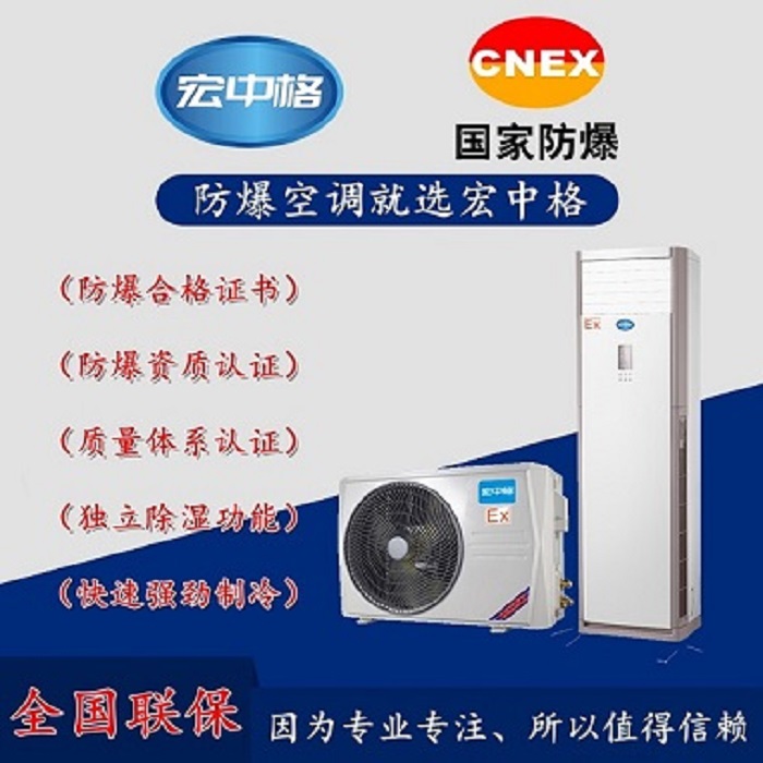 宏中格防爆空调系列机型通过特殊防爆技术处理,广泛应用于国防、科研、石油、化工、变电站、化学品仓库、医药、加工制造、生物等存在ⅡA、ⅡB级,T1~T4组可燃性气体、蒸汽与空气混合形成的易引发易爆的危险场所,是针对有温度控制要求场所设计的特种调温空调设备,系列产品均通过国家防爆电气产品质量监督检测中心检验,获得国家防爆电气设备防爆合格证:防爆空调机CNEX17.0179;其外形美观,设计合理并具有安装维修方便等特点,全系列防爆产品内部采用优质压缩机、微电脑控制、数字显示,具有噪声低、性能稳定、操作简便等优点。深受广大特需行业客户喜爱,并以部分录入特需行业定点采购名录。