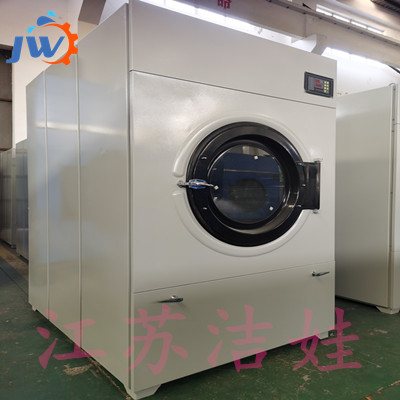 江苏洁娃机械制造有限公司烘干机:按容量大小分为:30kg、50kg、100kg、120kg、150kg。该机为箱柜立式结构,通过顶置散热器,由底部抽风机,将热量均匀散发至箱体内部,滚筒作正反转运转,使织物均匀受热,湿气排出机外,达到烘干效果。该机由内置不锈钢滚筒、散热器、焊接外壳、电机、抽风机、电器部件、传动部件等组成。结构合理、效率高、噪音低、安全可靠。是布草、织物的理想烘干设备。