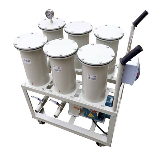 LJL精密滤油机设有六级逐级加密的五层加强型精密过滤芯,轻便灵活、操作方便、不用滤纸、不污染场地、能精细过滤油中的各种杂质。是电力、石化、冶金、机械、铁路等各行业对绝缘油、润滑油、液压油、淬火油、清洗油、冷冻油、防锈油、导热油等油品的高精度除杂,手推式设计,移动方便,特别适合于远距离、加油、抽油及过滤使用。整机外形尺寸很小,它除了小型高效、轻便灵活外,还具有装拆容易,清洗方便,使用中不漏油的特点,克服了传统的板框式滤油机换滤纸时,不可避免要漏油污染场地的致命弱点。传统的板框压力式滤油机需购买大量的滤纸,还要自己打孔,一次少则换十张,多则数十张,油中含水量较大时则十多分钟就需更换一次,否则,一旦纸被击穿,杂质必将穿过滤纸混入被净化的油中,导致前功尽弃。因其采用寿命极长的精密过滤系统(逐级加密式过滤芯),滤芯表面罩上一层复合材料做的高强度的精密过滤膜,当精滤系统杂质堵塞后,可将其拆御下来清洗后再装上去(可反复清洗使用),使其拆装、清洗方便、省事,工艺独特、操作简单。