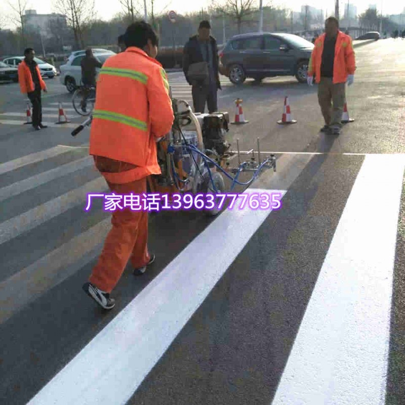 划线机前轮定向器:可锁定前轮定向装置,确保划线机沿直线定向或弯道转向自如。划线机导向杆:上、下、左、右可自由调整。 划线机涂料泵:双配新型液压驱动柱塞式高压无气泵机,运行可靠,适用常温标线涂料。该泵流量大、压力稳。压力为20mpa(工作压力为10-15mpa),单泵流量9L/min。标线,双实线、斑马线及机场双色线可一次完成。划线机喷涂枪:配三把新型手动喷枪,备有硬边柱型反向去污喷嘴(20/25或30/25)现场排堵方便快捷。划线机弧线喷嘴保证标线准直。闸把式单双枪控制器保证单双枪变换自如。划线机机身小,拐弯方便,操作容易,很容易上手。线条是标准的5-25公分,线条两侧没有毛边,很整齐,只要是标线漆都好划,效果更好。