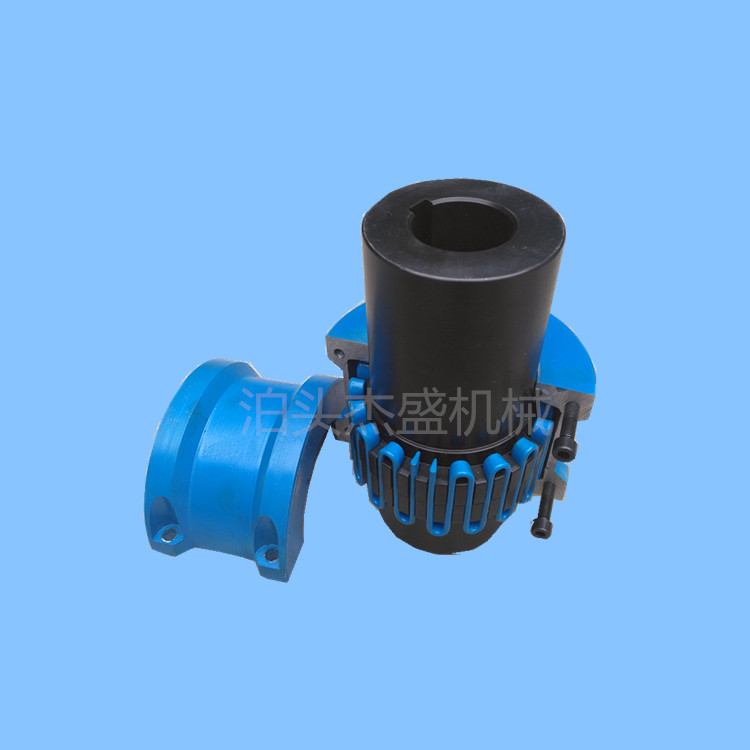 2、承受变动载荷范围大,起动 ,两个半联轴器与簧片接触的齿面是弧形的,当传递扭矩增大时,弹簧片将沿齿弧面变形,使两个半联轴器作用在簧片上的力点靠近。簧片与齿面的接触点即力矩的变化,是随着传递扭矩的大小而变化的,它的传动特性是变刚度的。因而它具有比一般弹性联轴器能承受 大的载荷变动量。传动力使簧片沿齿弧变形时所产生的缓冲作用,尤其在机器起动时或冲击载荷时,于 程度上有保护配套机件的 性。