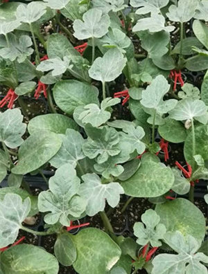 四、美都西瓜苗:中熟杂交种。常温下开花至果实成熟约40天,一般单瓜重5千克以上。